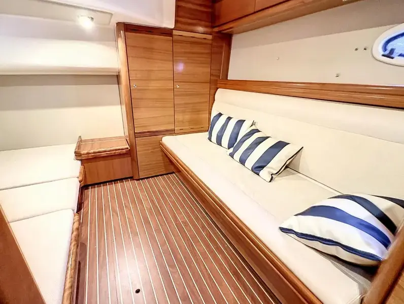 This 2008 model underwent a full refit in 2023, including an engine overhaul, new batteries, and upgraded navigation electronics. She is equipped with twin Volvo Penta D4-300 engines, delivering reliable performance with a cruising speed of 23 knots and a top speed of 31 knots. With her valid Greek Charter License, she is fully compliant for commercial chartering in Corfu, offering a unique opportunity to combine private enjoyment with income potential.