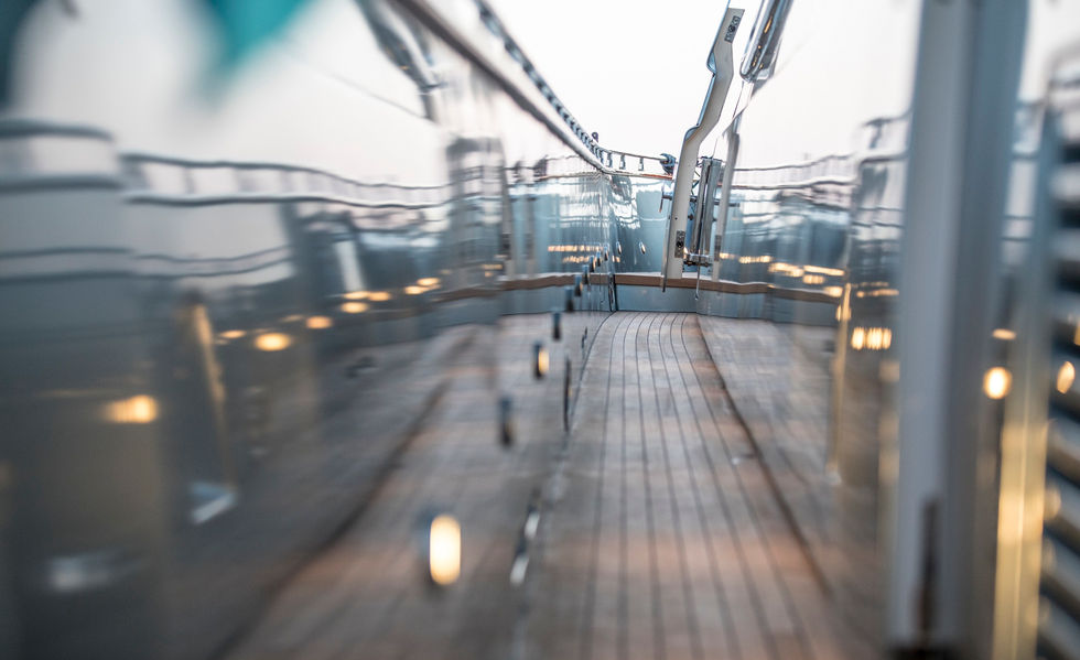 There is open-air dining on the main deck aft and steps leading down to the swim platform and tender and toy garage. Sidedecks lead forward to a large foredeck sunpad.