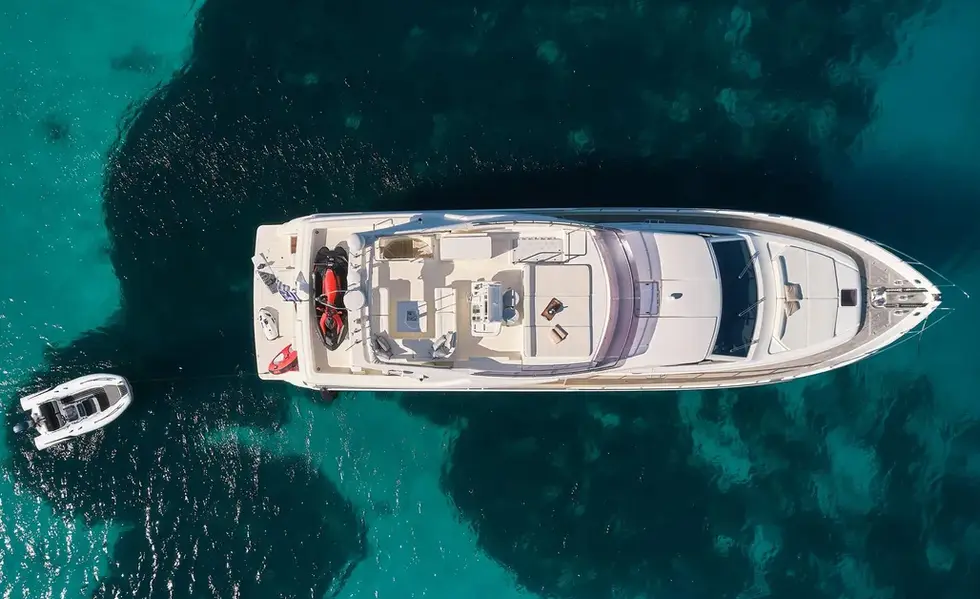 Step aboard this 2006 Ferretti 731, a testament to Ferretti Yachts' enduring legacy of elegance, performance, and luxurious comfort. This exquisite 2006 Ferretti 731 is a meticulously maintained motor yacht that is impeccably prepared for the upcoming 2025 season. Designed to effortlessly combine graceful lines with great capabilities, she is powered by twin 1550hp MAN diesel engines, which have been diligently cared for and now show just past 1900 hours. She confidently cruises at 22 knots, offering a smooth and efficient passage across the stunning Mediterranean. Currently berthed in Northern Greece, Greece, she is ready for her new owner.