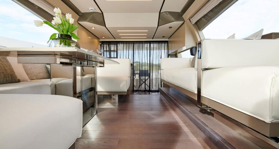 With the rare originality of her hull design, her various interior layouts and the arrangement of her engine rooms, the Ferretti Yachts 550 EL PETAS combines elegance, practicality and seductively beautiful lines.